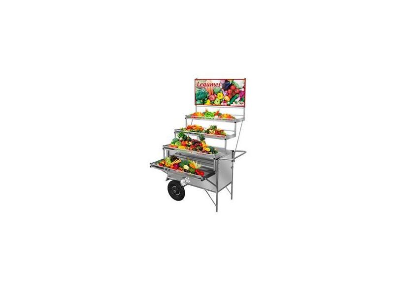 Carrinho Expositor de Legumes em Inox com Rodas Pneumáticas e Toldo