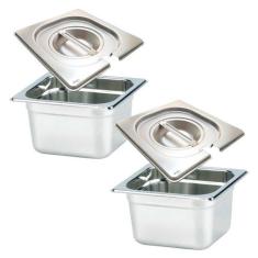Conj 2 Cuba Gastronômica Inox GN 1/6x100 mm 1,52 L sem alça COM TAMPA