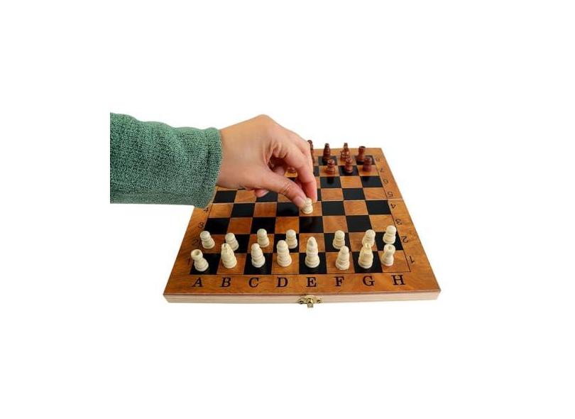 Jogo de Xadrez Dama Gamão Jogos Tabuleiro em Madeira 3 em 1 Conjunto 23,5cm