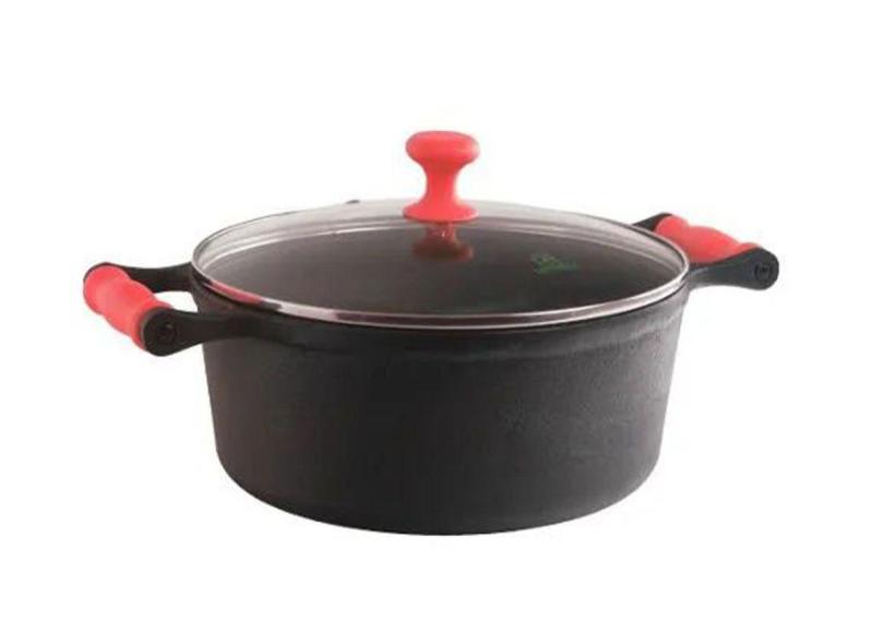 Caçarola Ferro Alça Silicone Tampa Vidro 30Cm