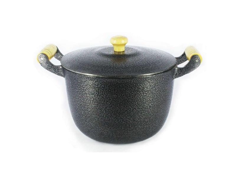 Caldeirão Alumínio Fundido Craqueado Alça Madeira 28Cm