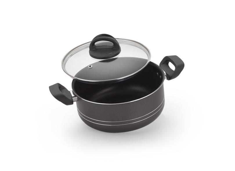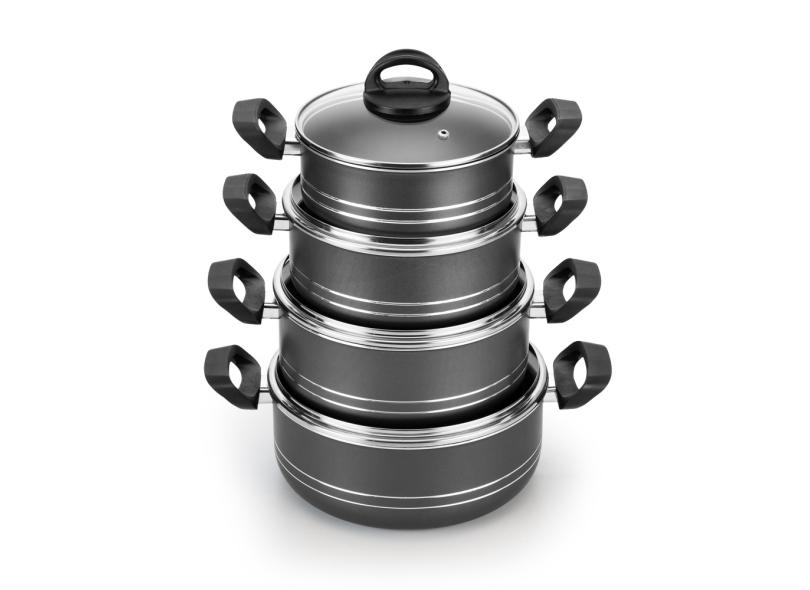 Conjunto de Panelas Caçarolas Antiaderentes com Tampa de Vidro 18 a 24 Grafite
