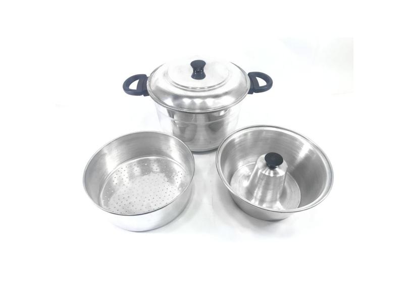 Conjunto Panela Banho Maria 3 Em 1 Forma Pudim Alumínio