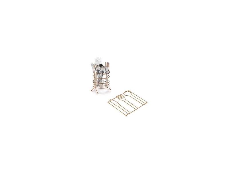 Conjunto Porta Talher e Descanso de Panela Metal Rose Gold
