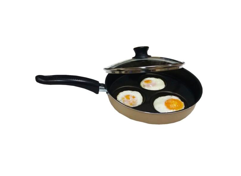 Frigideira 3 Ovos Tampa Vidro Antiaderente Bege Docesar