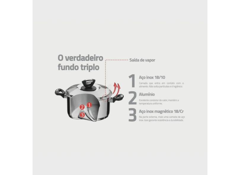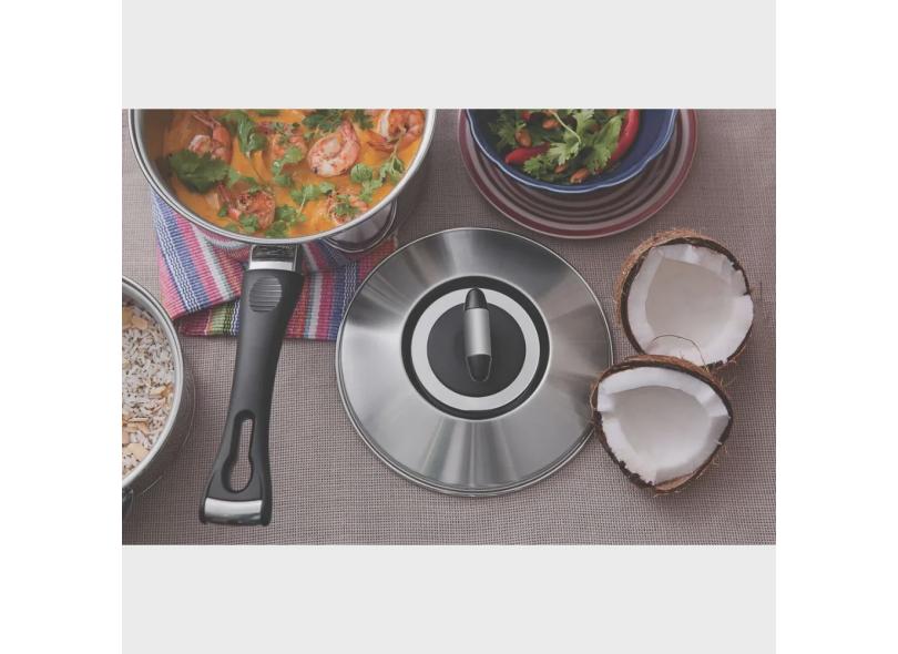 Frigideira Tramontina Solar Baquelite em Aço Inox Fundo Triplo com Tampa Cabo de Baquelite 20 cm 2,1 L