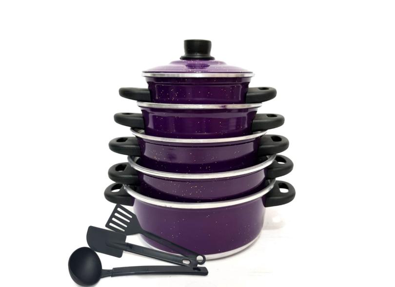 Jogo de Panelas Roxo 5 pçs Espátula