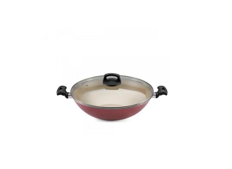 Panela Wok antiaderente 32cm Premium Cereja c/ tampa de Vidro Panelux