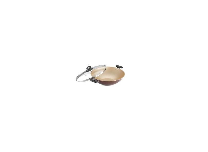 Panela Wok antiaderente 32cm tampa de Vidro Premium marrom Panelux