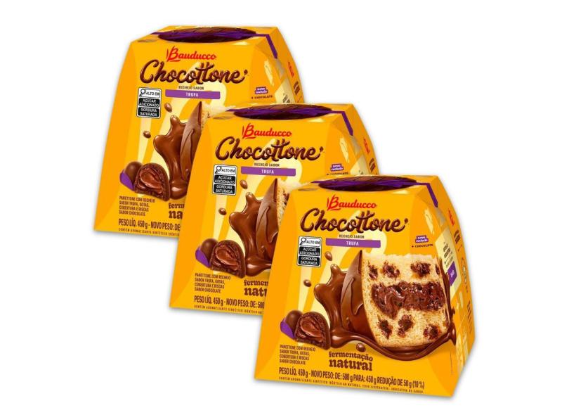 Chocotone Bauducco Kit 3 Panetones Recheados Trufa 450g