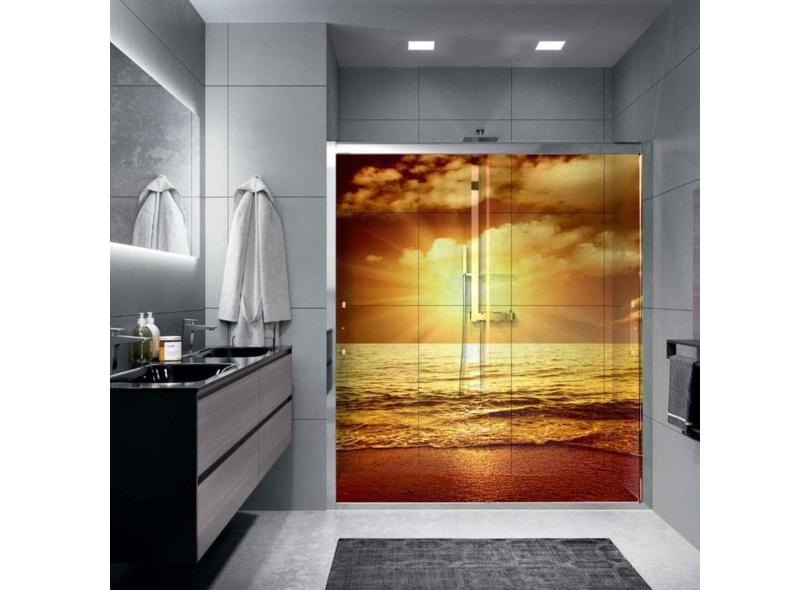 Adesivo Box Banheiro 3D Por Do Sol Padrão 2 Folha De Box