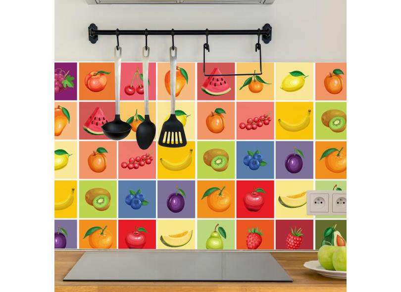 O menor preço encontrado no Brasil para Adesivo de ejo para Cozinha Frutas 10x10cm 100un atualmente é R$ 71,52.