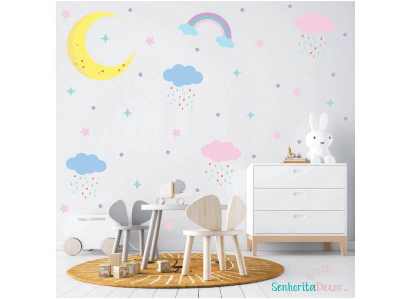 Adesivo de parede candy colors arco iris nuvens lua
