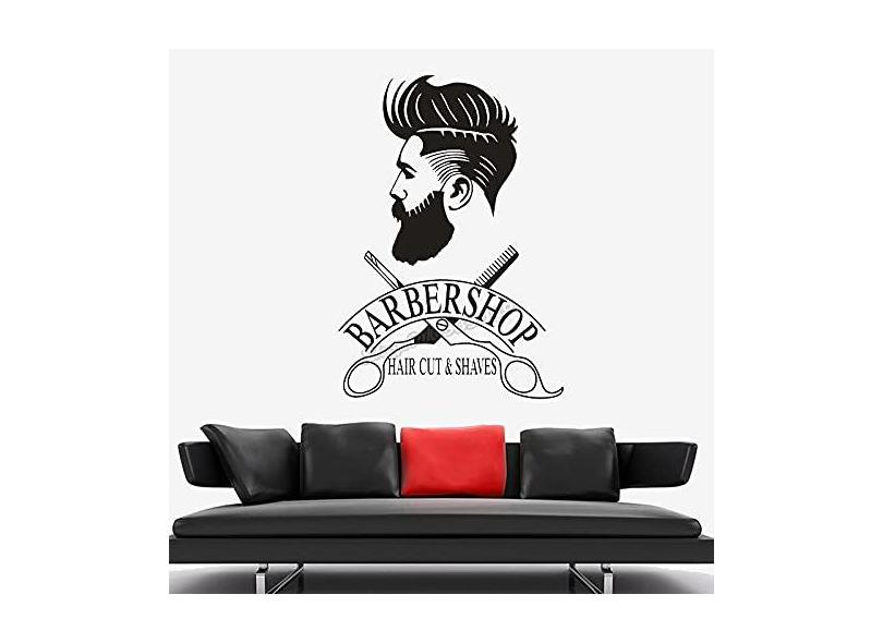 Adesivo de parede com logotipo de corte de cabelo hipster para salão de cabeleireiro tesoura decalque de parede masculino decoração de barbeiro pôster de decoração de janela 42 x 29 cm