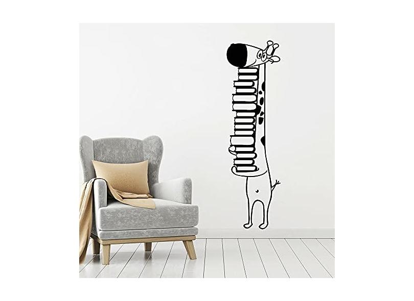 Adesivo de parede de vinil, biblioteca de girafa, leitura, livraria, livros, adesivos de parede, decalques de animais para biblioteca, decoração de berçário, papel de parede 143 x 42 cm