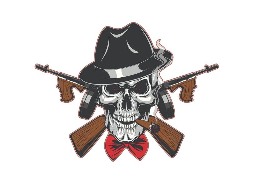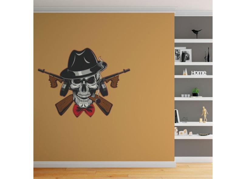Adesivo de Parede Decorativo Recorte Caveira Gangster Smoke
