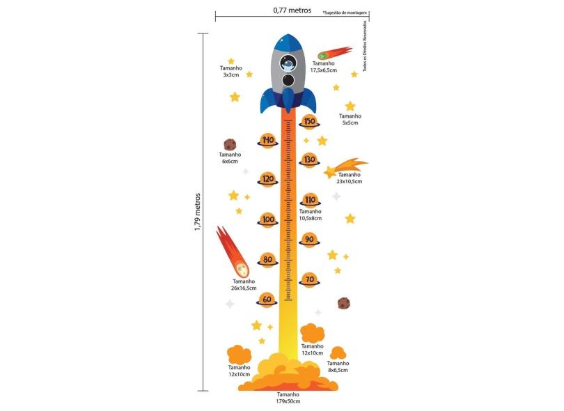 Adesivo De Parede Foguete Régua De Crescimento 179cm