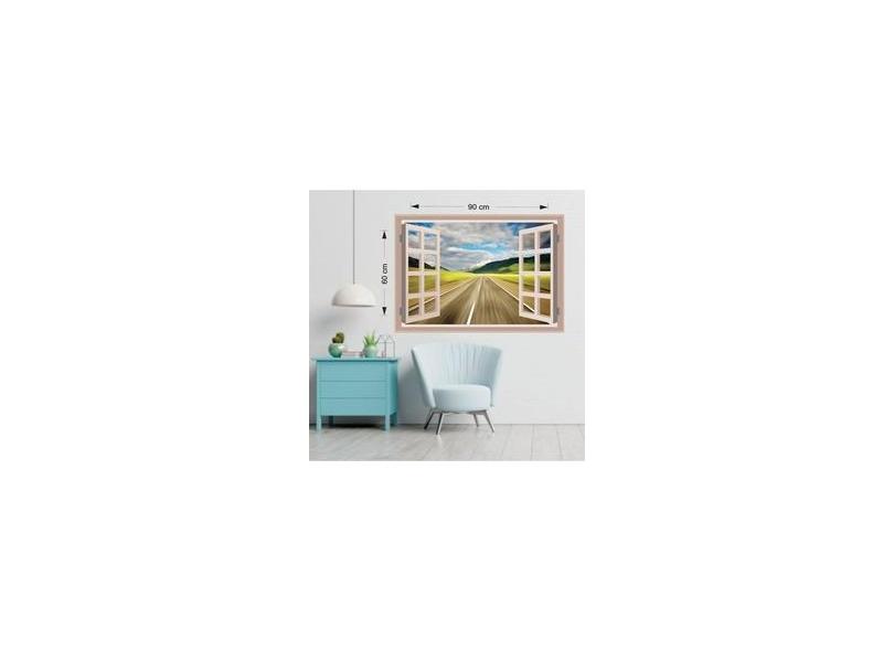 Adesivo de Parede Janela Paisagem Efeito 3d Tam90x60cm Mod61