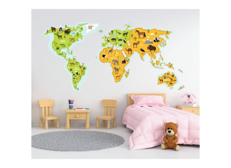 Adesivo De Parede Mapa Mundi Animais Infantil tamanho 50cm x 100cm
