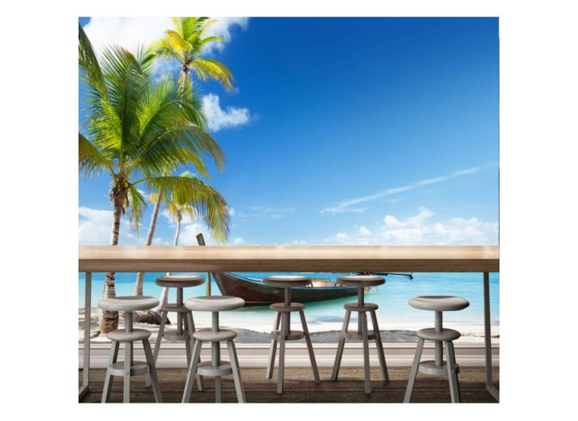 Adesivo Parede Paisagem Praia Barcos Mar Sol Natureza GG170