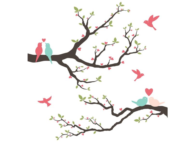 Adesivo Parede Quarto Pássaros Amor 80 x 214cm