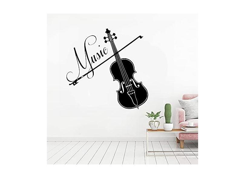 Adesivos musicais de parede de vinil para violino, decalques de parede de música para estúdio de gravação, decoração de quarto de casa, 57 x 57 cm