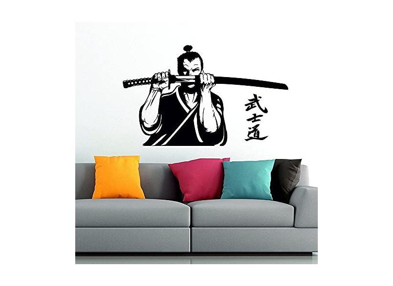 Bushido Decalque de parede Samurai Guerreiro Katana Espada Japonesa Marcial Adesivo de parede Arte de vinil Decoração para Mural de decoração de quarto de casa 57 x 35 cm