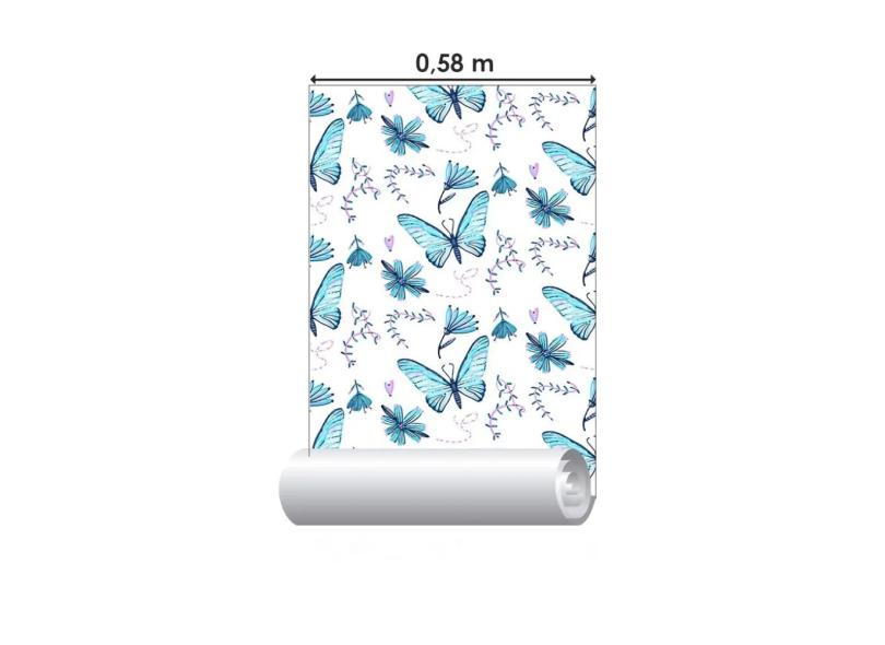 Papel De Parede Adesivo Borboletas Azuis N014110 Rolo0,58X3M