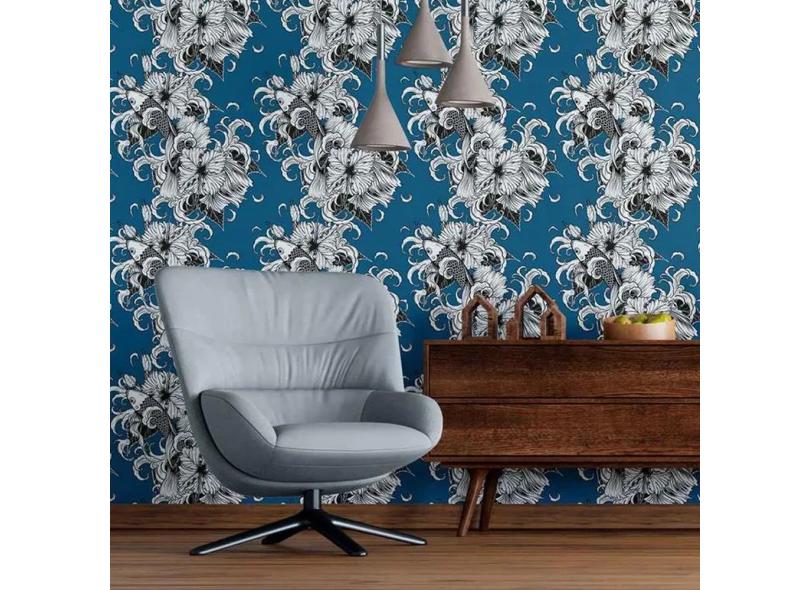 Papel De Parede Adesivo Carpas Flores N09018 Rolo 0,58x3,00M