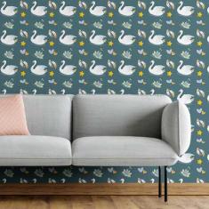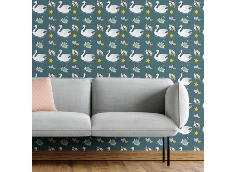 Papel De Parede Adesivo Cisne Coração N05122 Rolo 0,58X3M