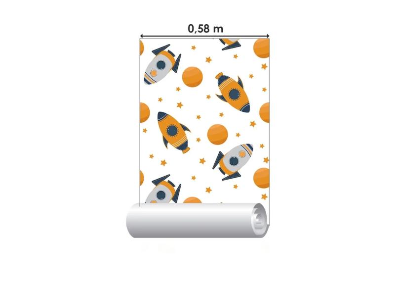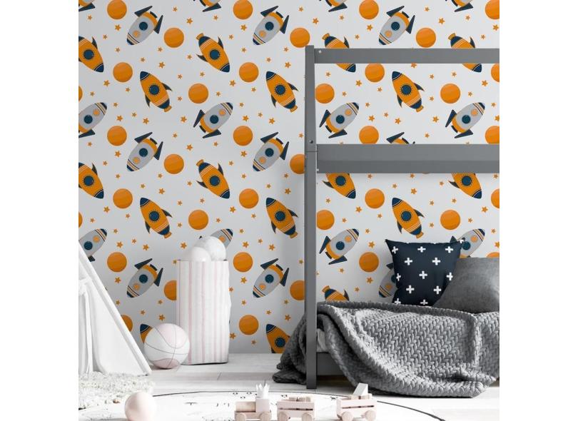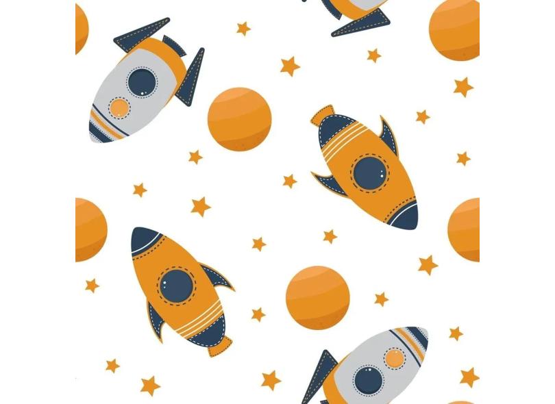 Papel De Parede Adesivo Espaço Foguete N06209 Rolo 0,58X3M