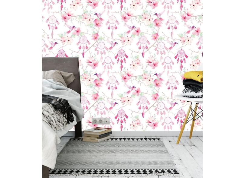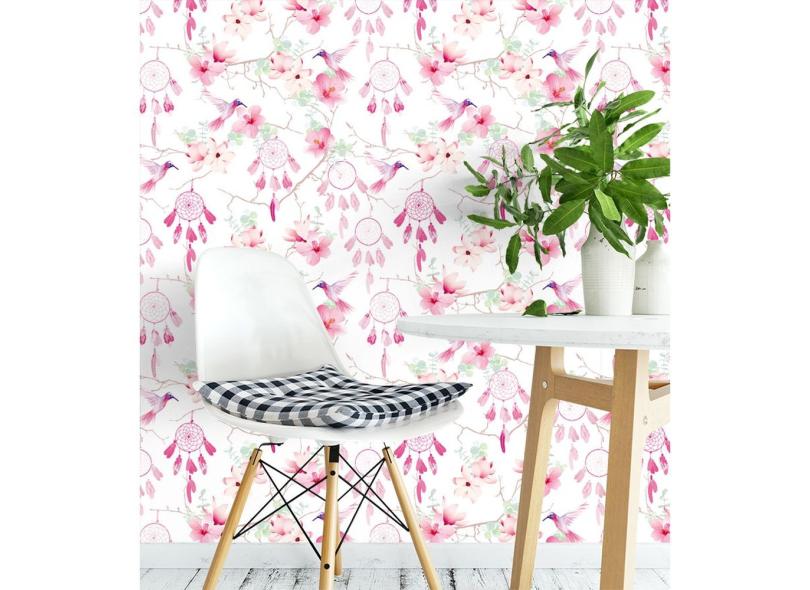 Papel De Parede Adesivo Filtro Dos Sonhos Beija Flor Com Tons De E Verde Para Quarto Sala - 2,50x0,50m