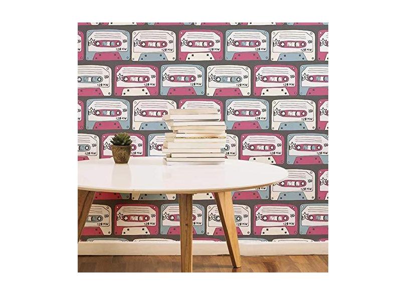 Papel de Parede Adesivo Fita K7 Retrô N05063 Rolo de 0,58x3,00