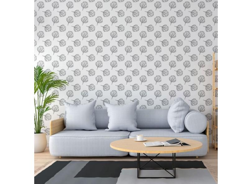 Papel De Parede Adesivo Floral P&B N013119 Rolo 0,58X3M