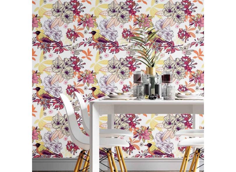 Papel De Parede Adesivo Floral Tropical N014132 Rolo0,58x3M
