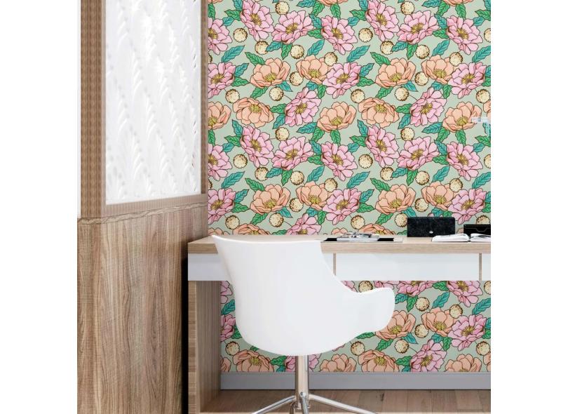 Papel De Parede Adesivo Flores N09066 Rolo 0,58x3,00M