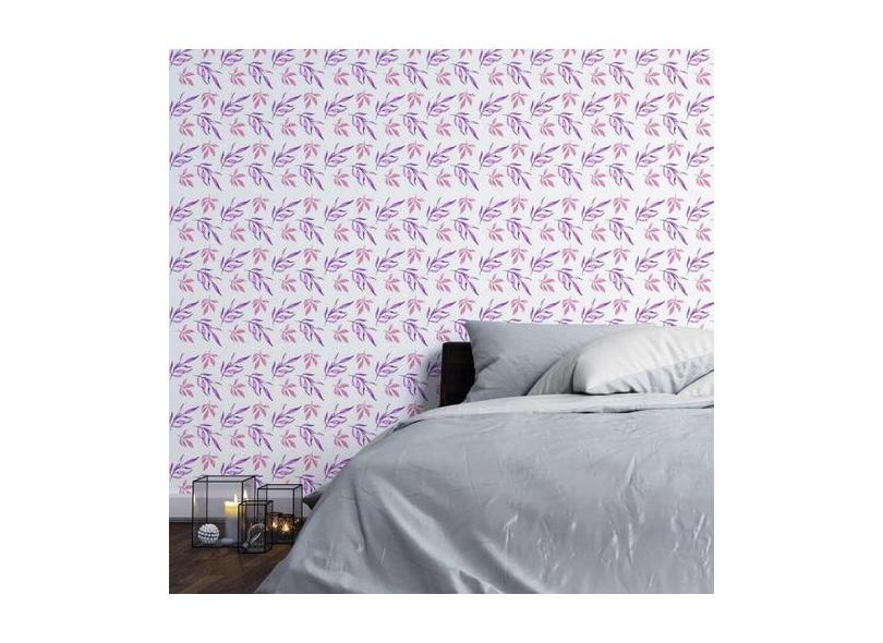 Papel de Parede Adesivo Folha e Lilás N03011 Rolo de 0,58x3,00