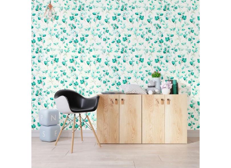 Papel De Parede Adesivo Folhas Verde N012041 Rolo 0,58X3M
