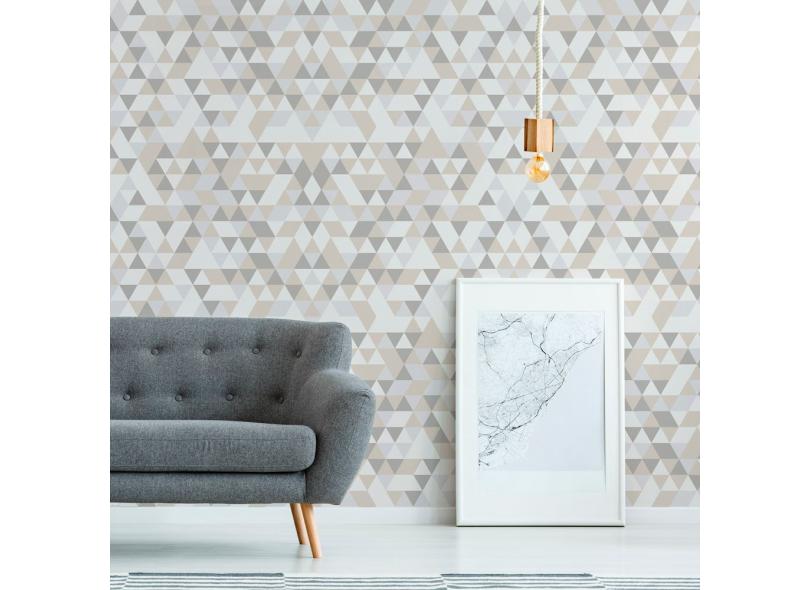 Papel De Parede Adesivo Geométrico Mosaico Tons De Bege Com Marrom