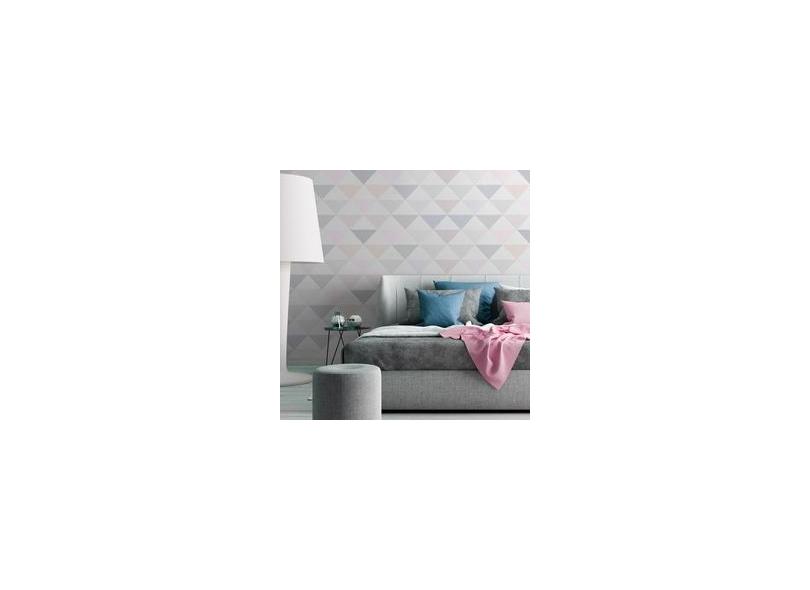 Papel De Parede Adesivo Geométrico Triangulos Bege E Lilás