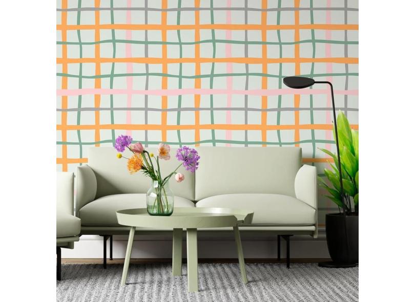 Papel De Parede Adesivo Gride Colorido N06284 Rolo 0,58X3M