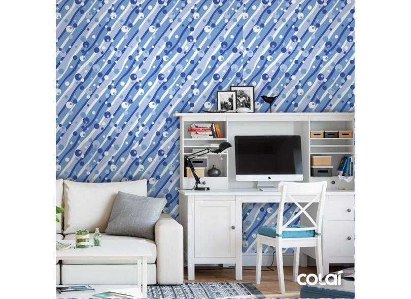Papel De Parede Adesivo Lavável Bolhas Azuis 3M