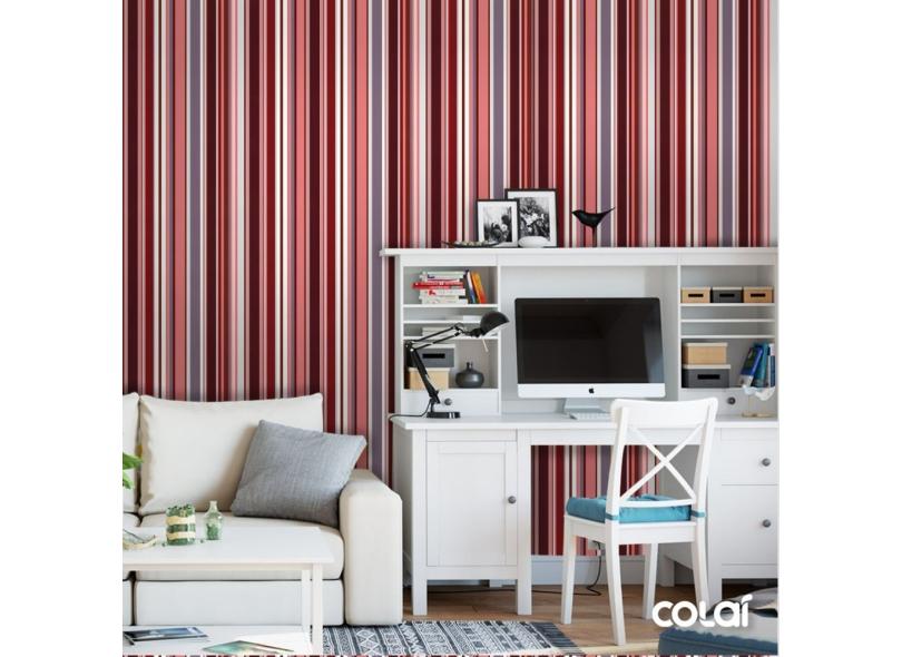 Papel De Parede Adesivo Lavável Listras s E Bordô 6M