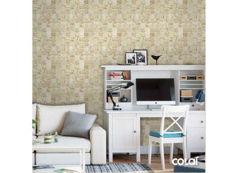 Papel De Parede Adesivo Lavável Pedra Mármore Bege
