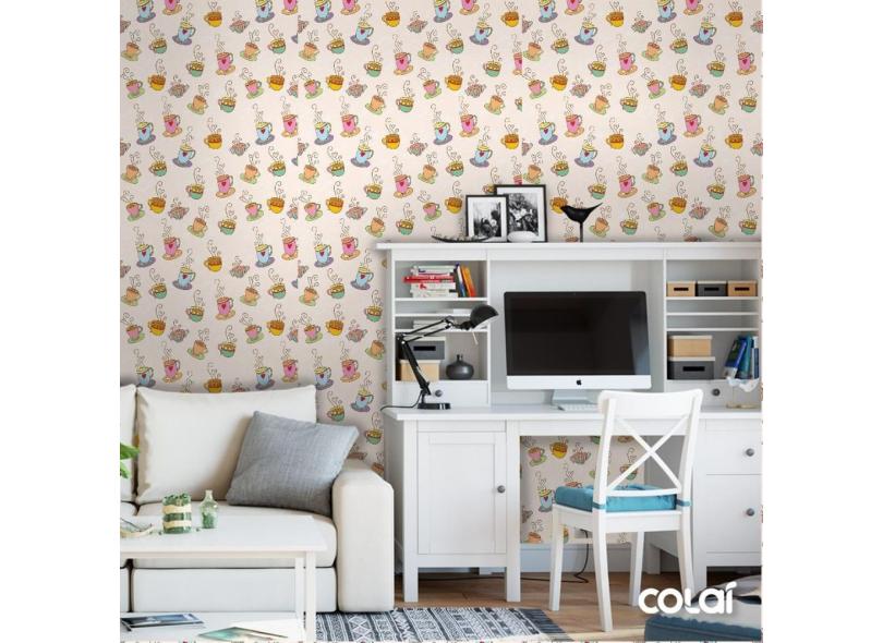 Papel De Parede Adesivo Lavável Xícaras De Café 9M