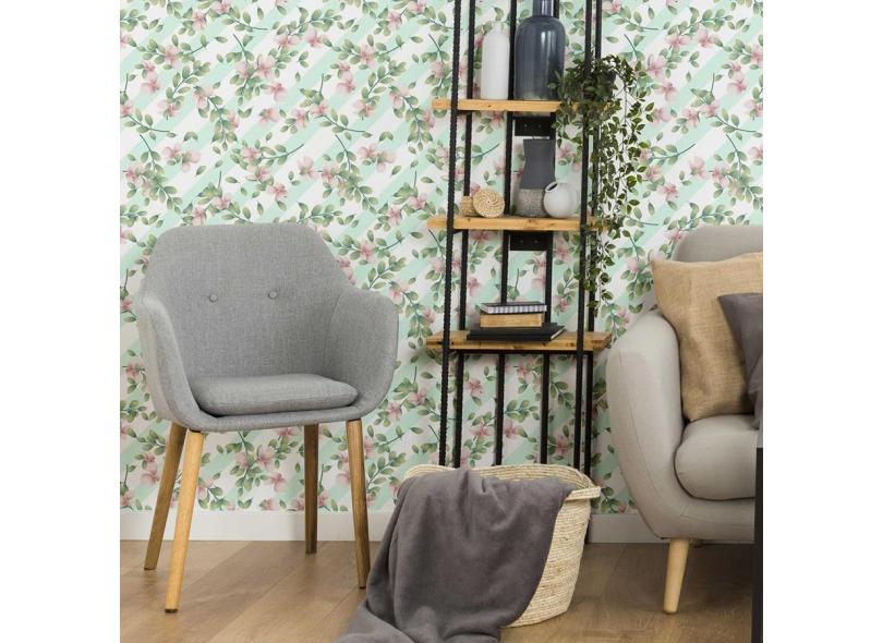 Papel De Parede Adesivo Listrado E Floral N06030 Rl 0,58X3M