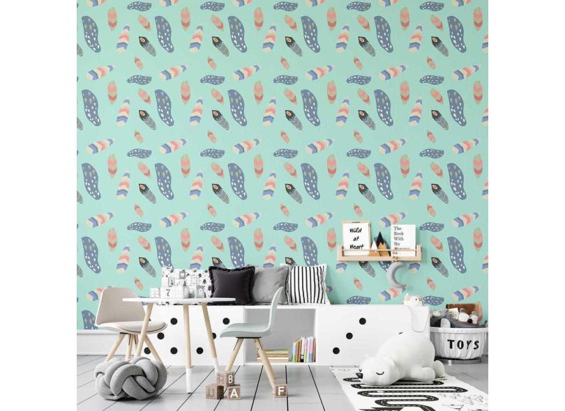 Papel De Parede Adesivo Penas Coloridas N07026 0,58X3,00M