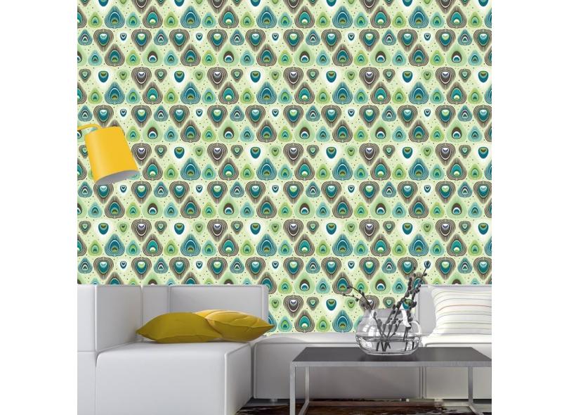 Papel De Parede Adesivo Penas Verde 77489368 Rolo 0,58X3M