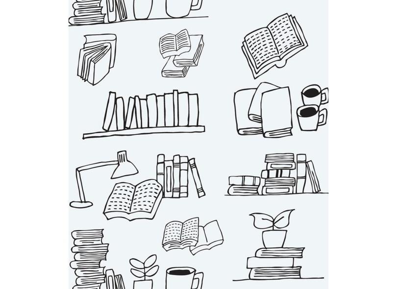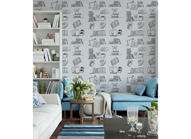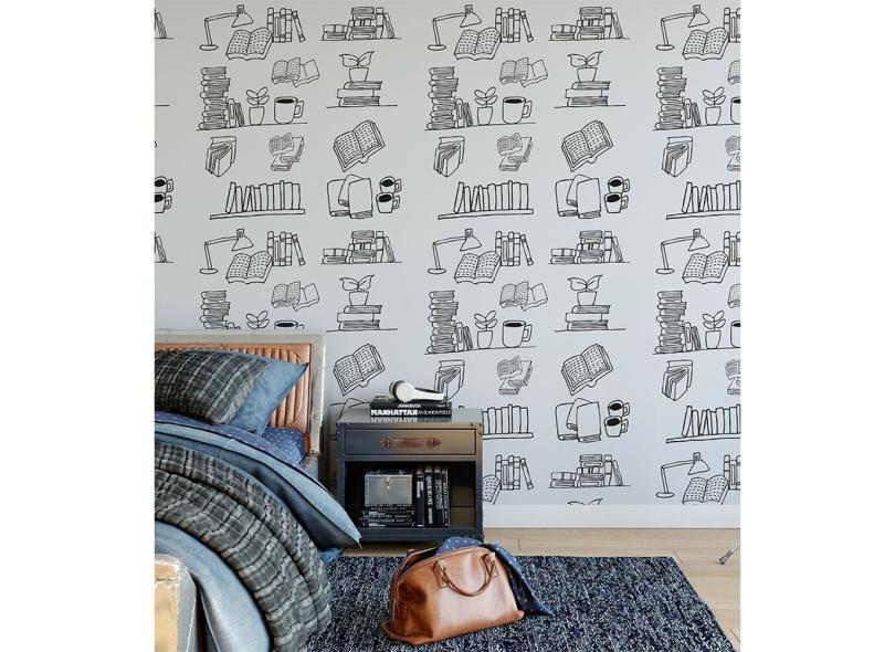 Papel De Parede Adesivo Tematico Para Sala Quarto De Estudos Em Tons E Detalhes - 2,50x0,50m
