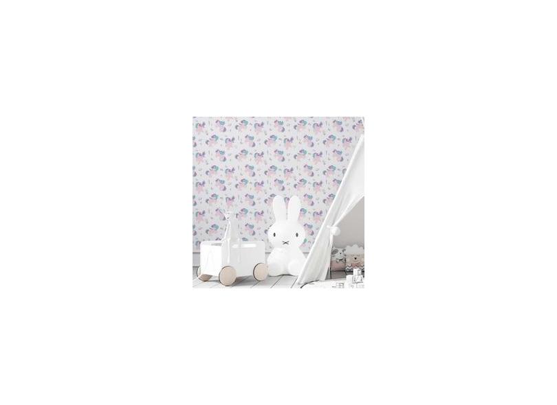 Papel De Parede Adesivo Unicórnio Lilás N03084 0,58X3,00M